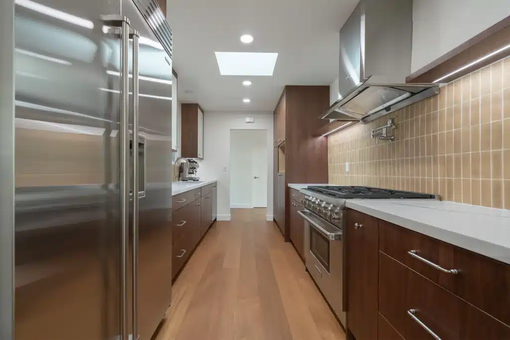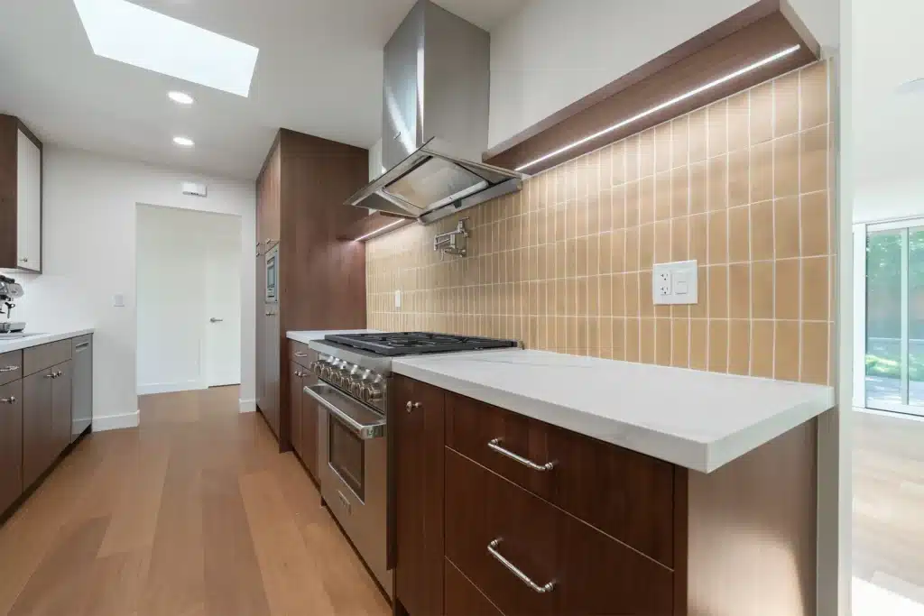 A new central skylight was installed above the cooktop, dramatically brightening the space during the day. - Flooring Upgrade: