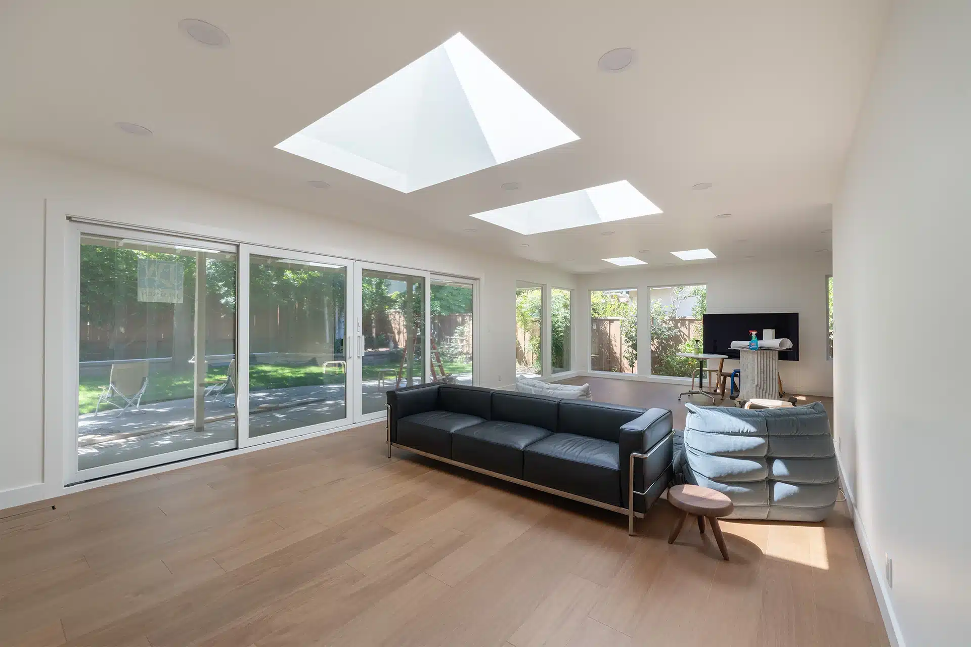 A new central skylight was installed above the cooktop, dramatically brightening the space during the day. - Flooring Upgrade: